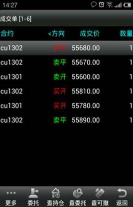 ◇ 查成交:點擊“查成交”,進入成交單界面,可以查看到已經成交合約的詳細信息。