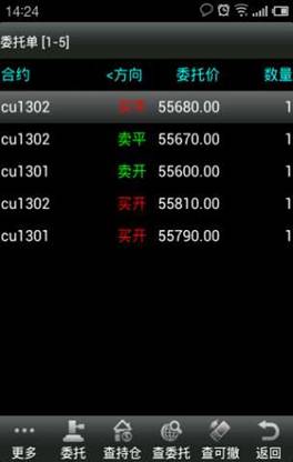 ◇ 查委托:點擊“查委托”,進入委托單界面,可以查看到委托的合約、委托價格以及數