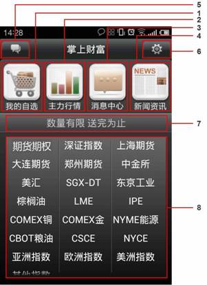 ◇ 登錄掌上財富后,點擊“新聞資訊”,即可進入新聞資訊界面,新聞資訊主要包括期貨
